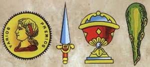 Карты по-испански называются или los naipes (слово каталонского происхождения) или las cartas (из латыни). Известная нам колода (baraja) с трефами (tréboles), бубнами (diamantes), пиками (picas), червами (corazones) называется французской. В испанской же колоде свои масти (palos): oros, copas, espadas, bastos/palos.